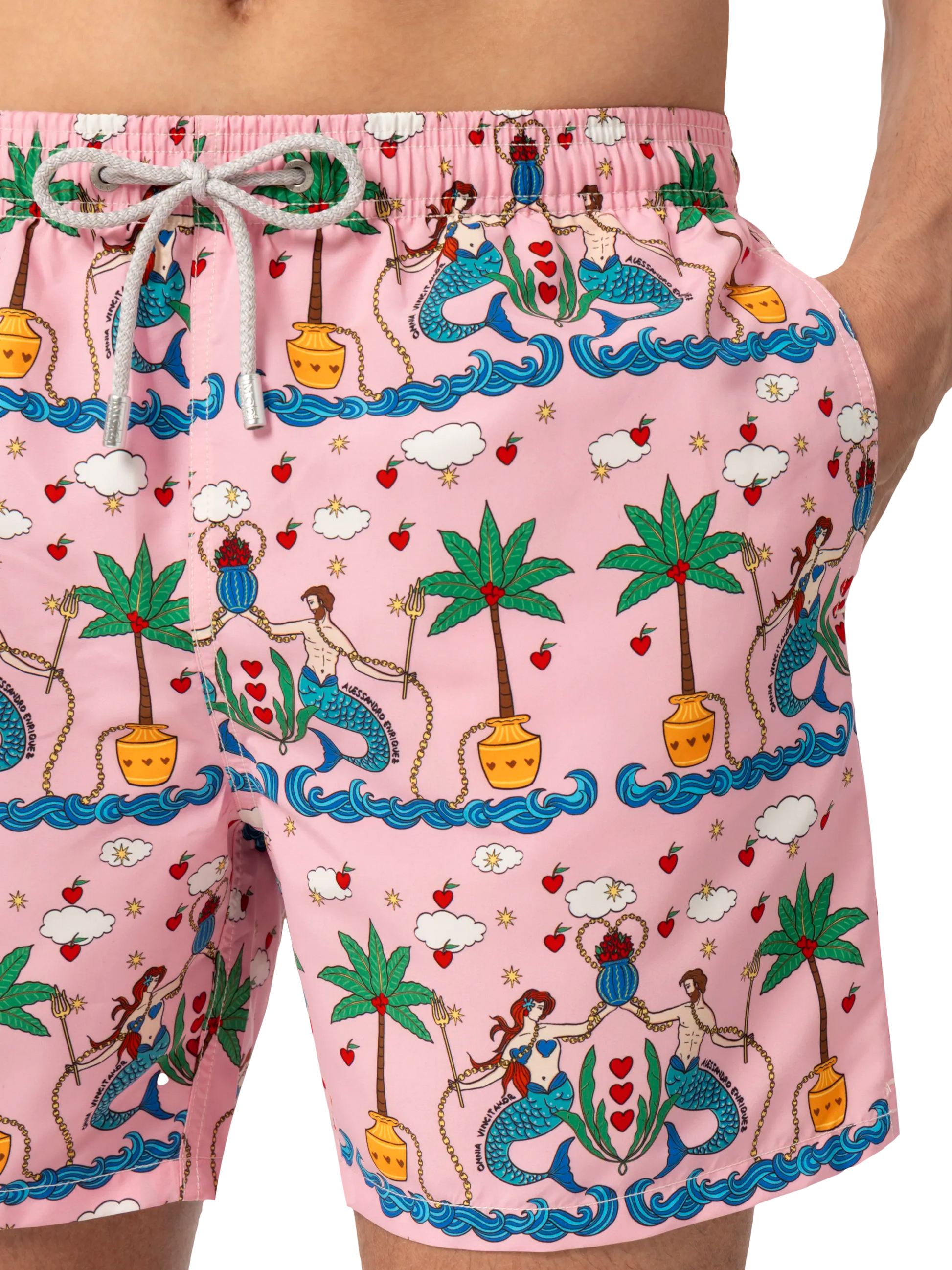 Costume mare lunghezza media Gustavia con stampa sirena | ALESSANDRO ENRIQUEZ SPECIAL EDITION