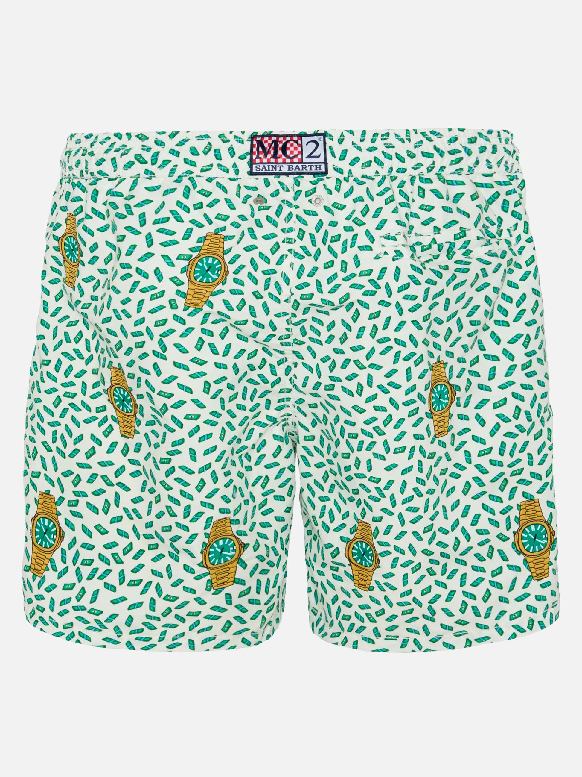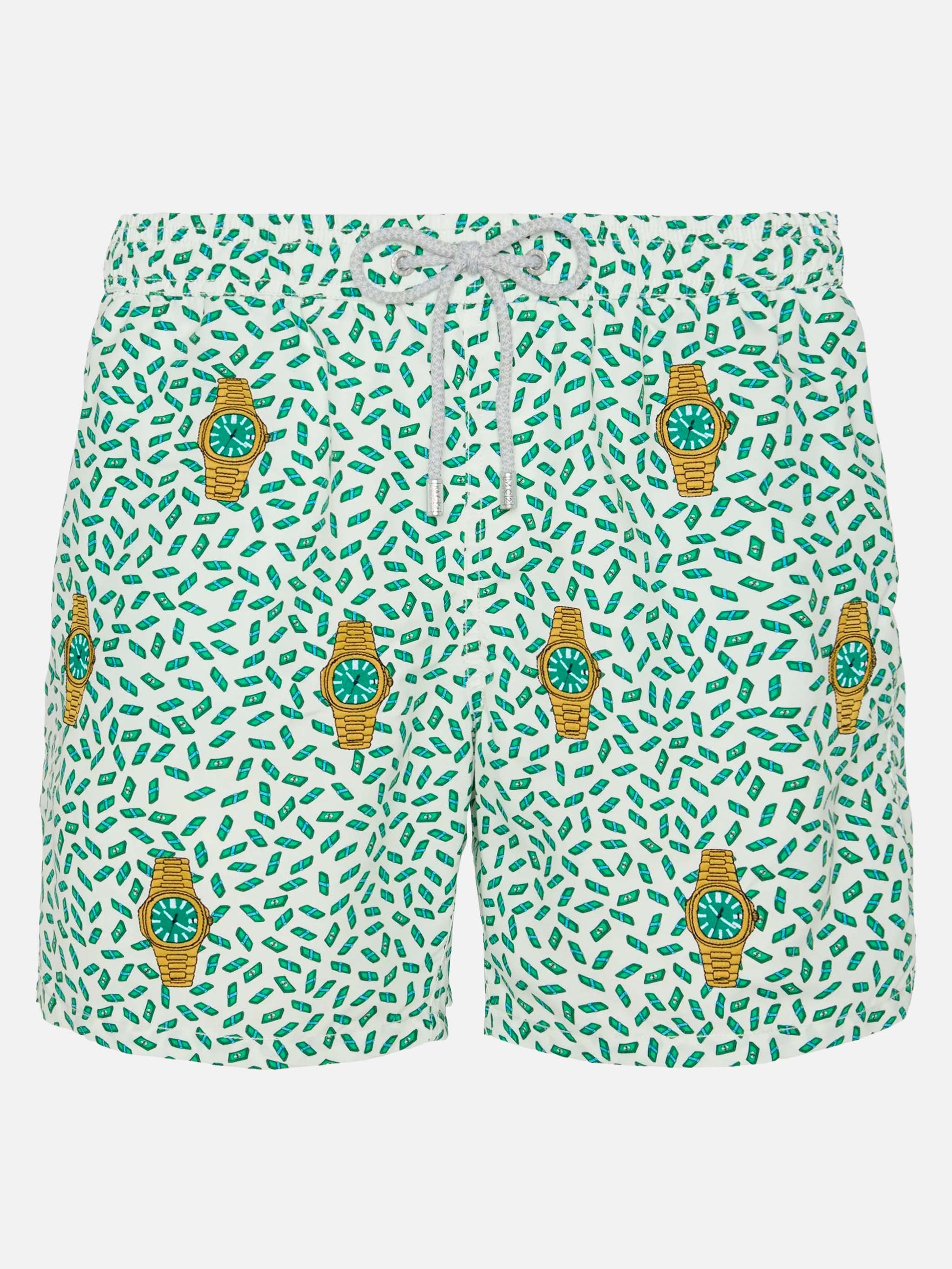 Costume mare lunghezza media Gustavia a righe con ricamo orologi