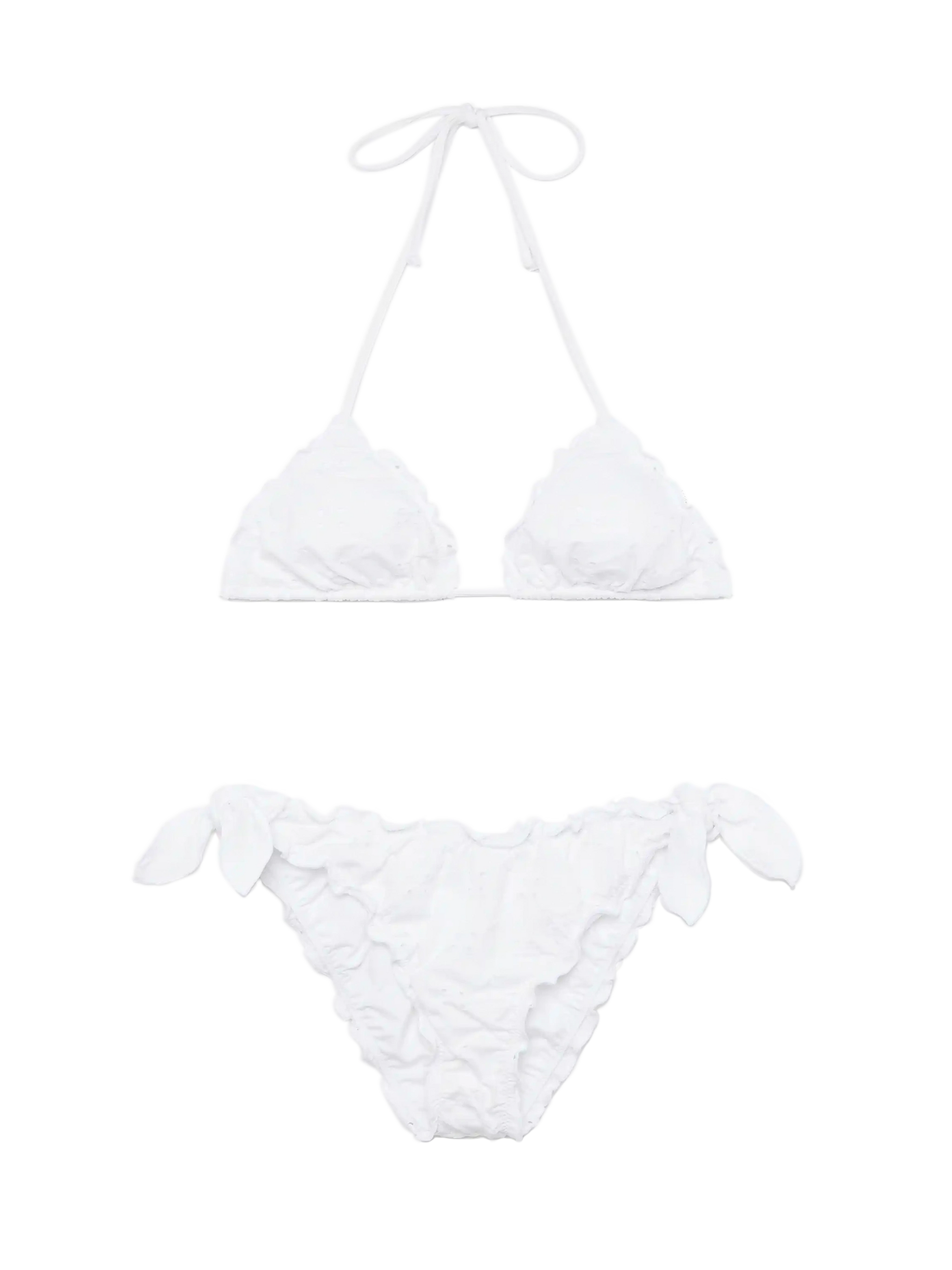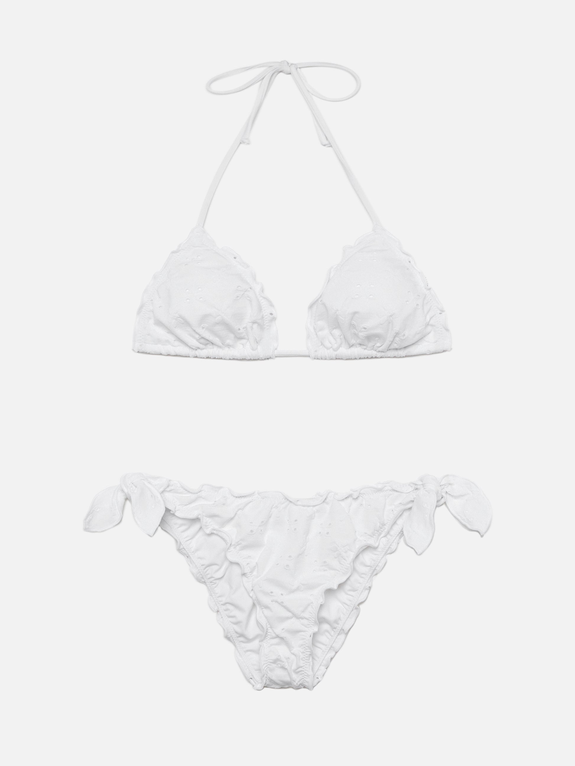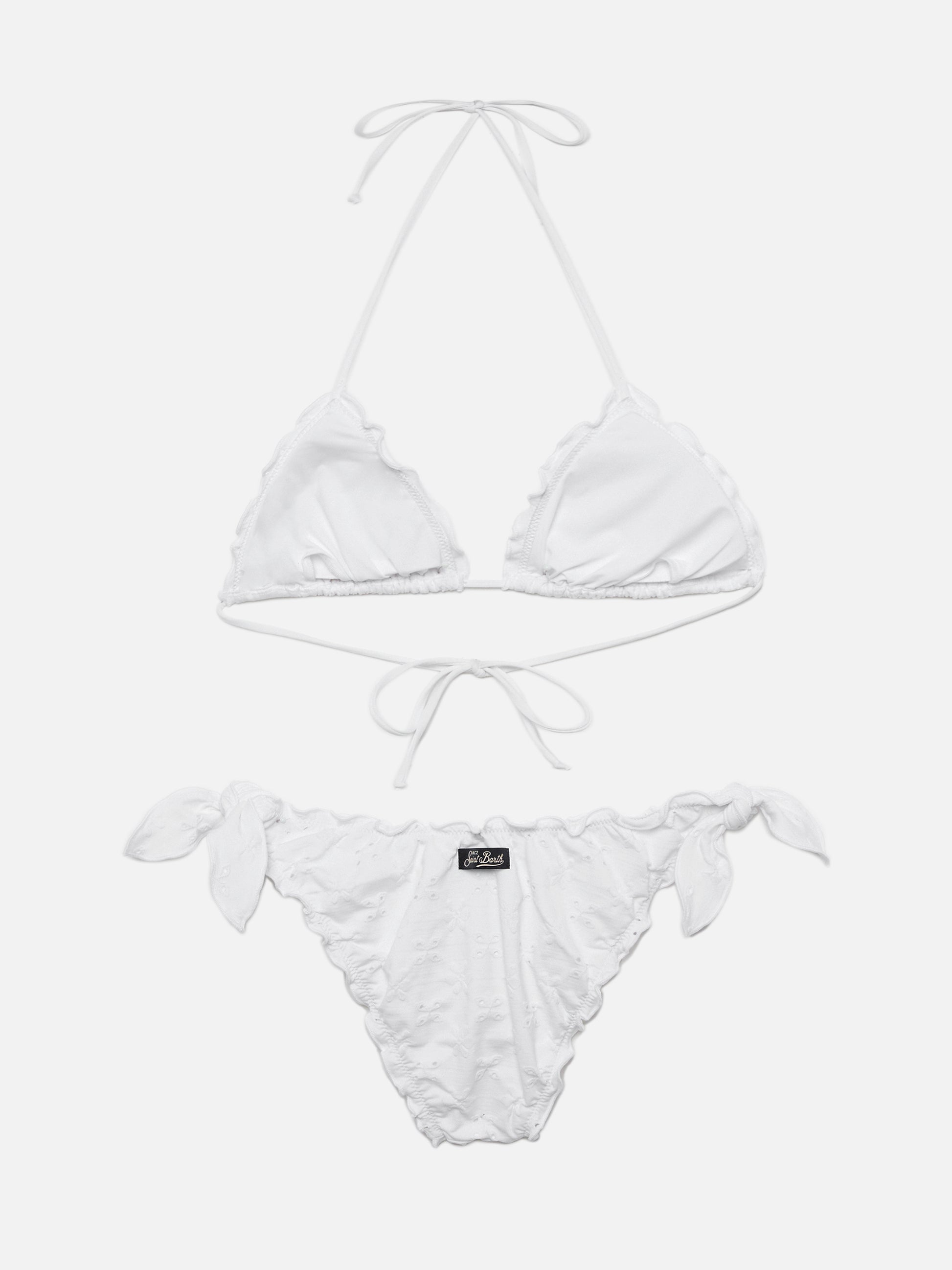Bikini classico a triangolo Sagittarius Moon in pizzo Sangallo bianco