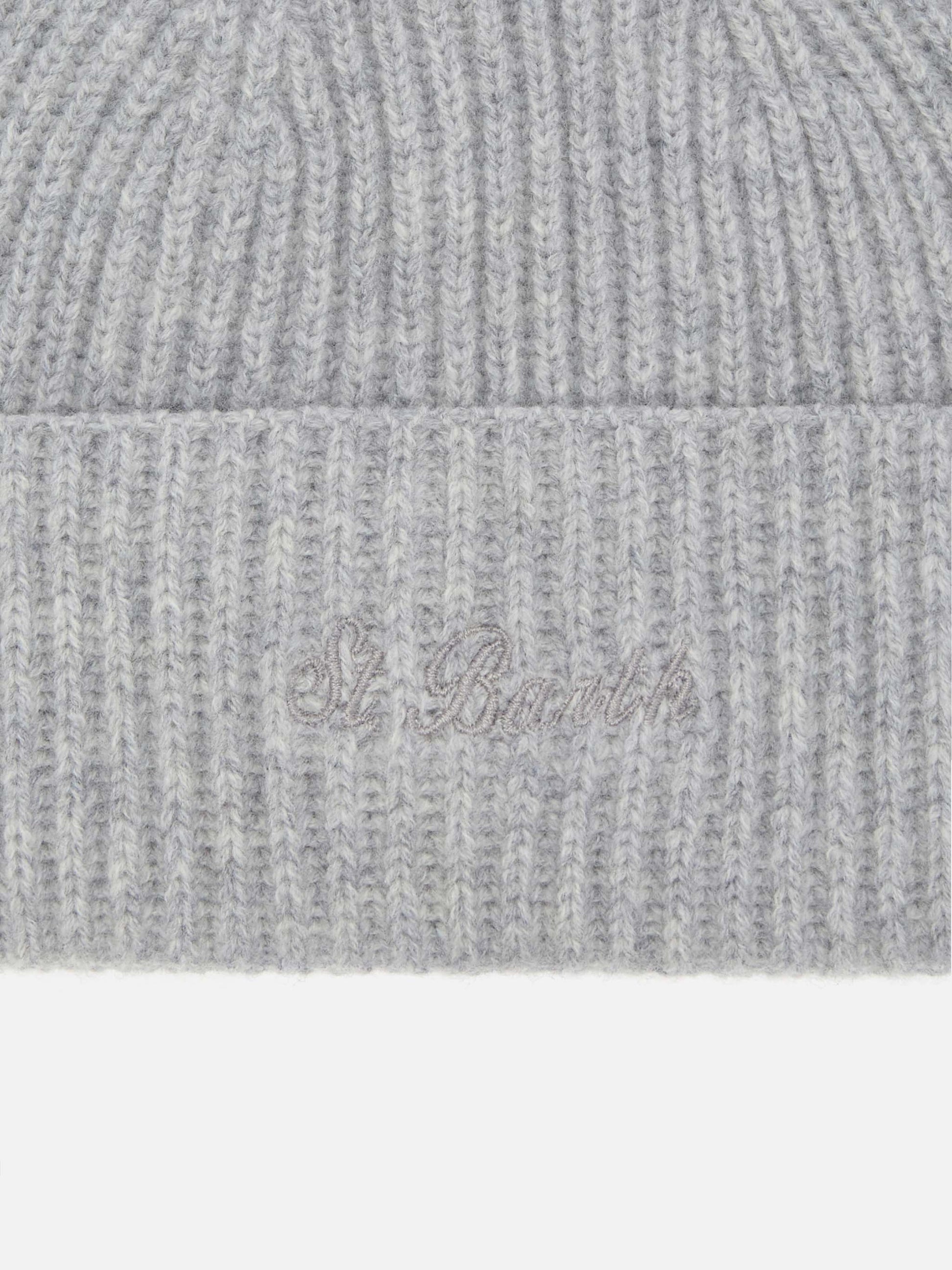 Berretto Moss in 100% lana grigio melange con ricamo St. Barth
