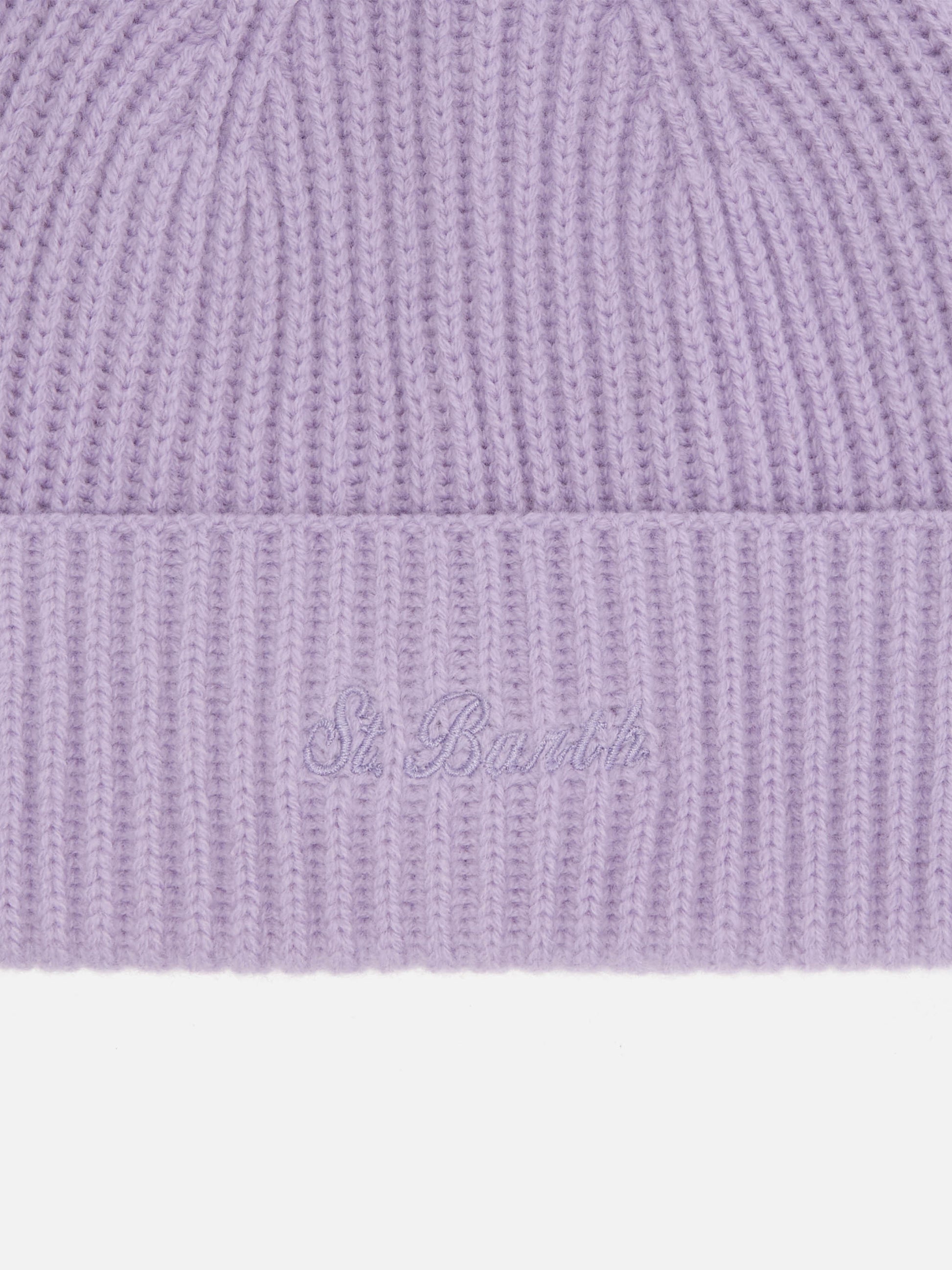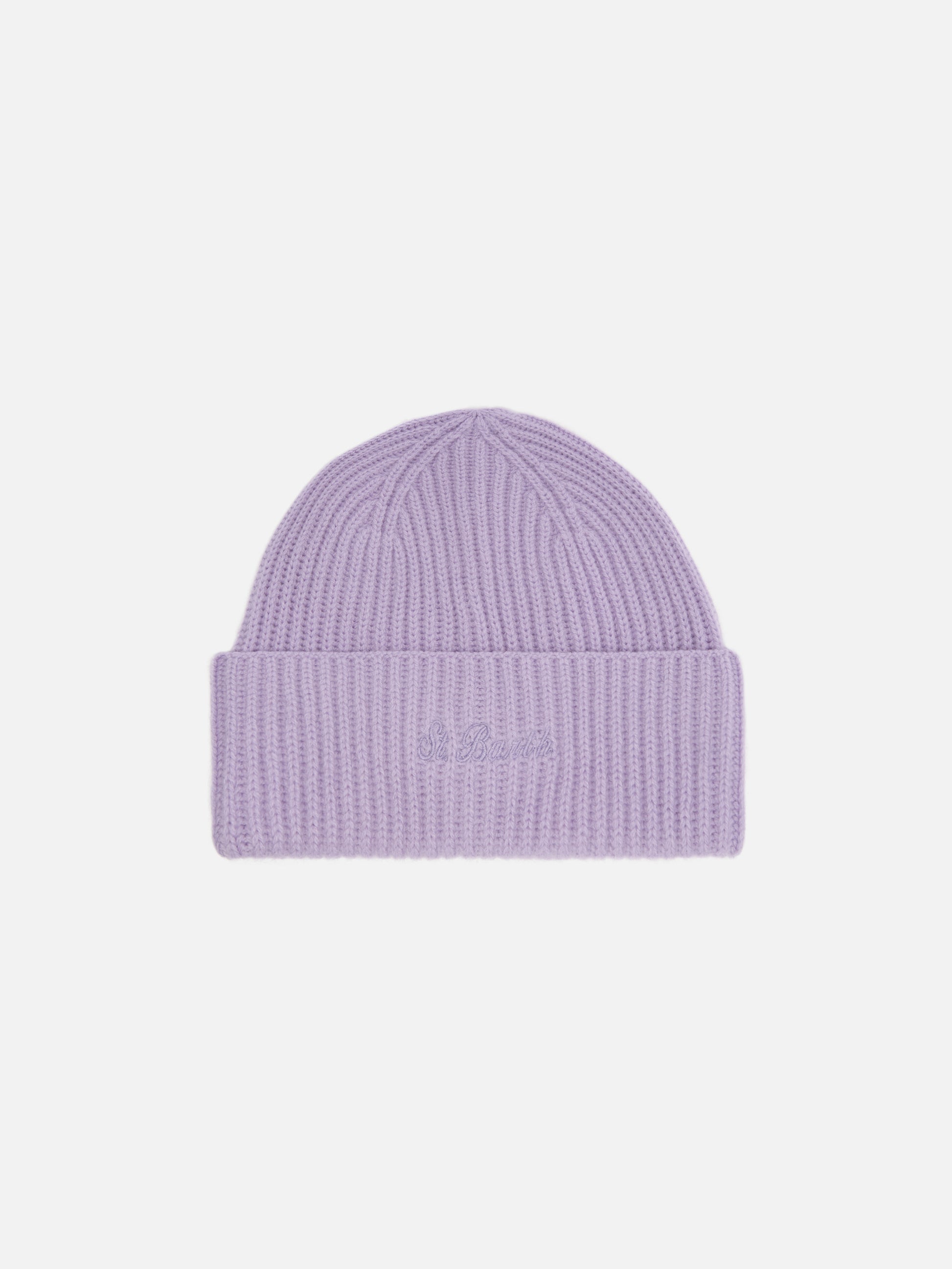 Berretto Moss in 100% LANA lilla con ricamo St. Barth