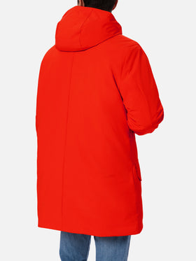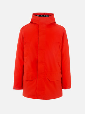 Parka arancione con cappuccio da uomo e fodera in bandana