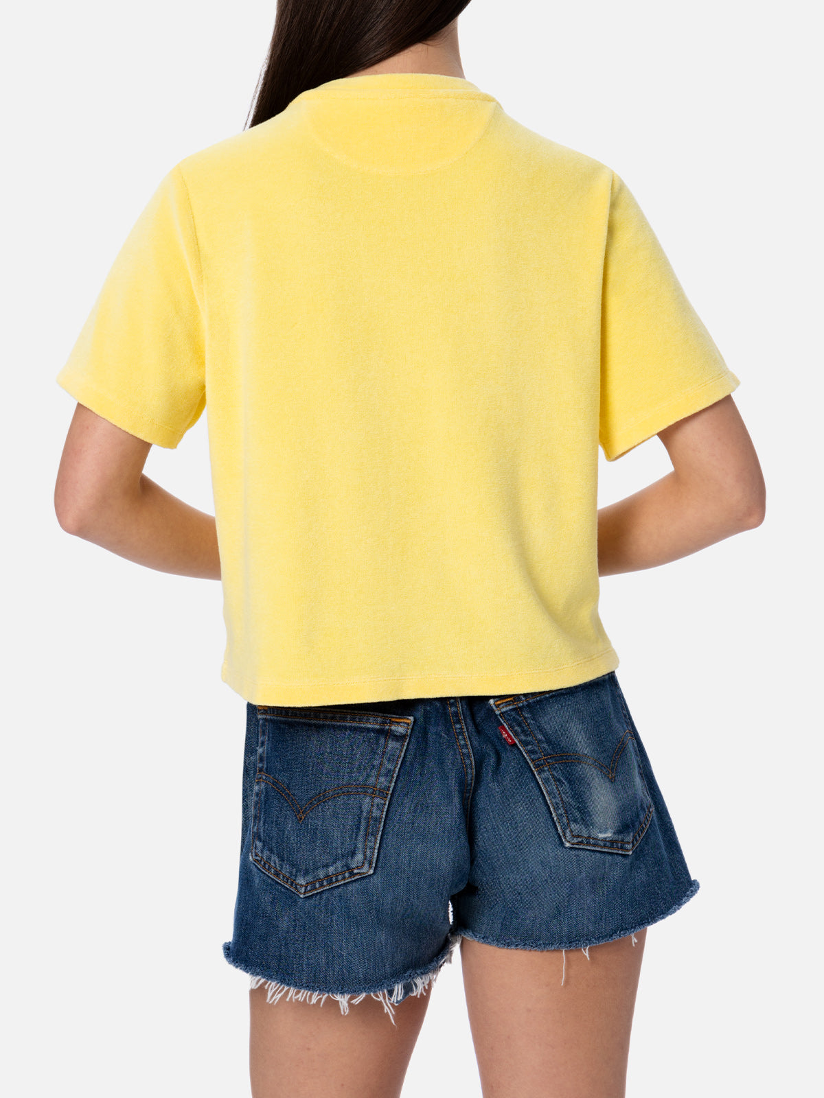 T-shirt da donna girocollo in spugna di cotone giallo pallido Emilie