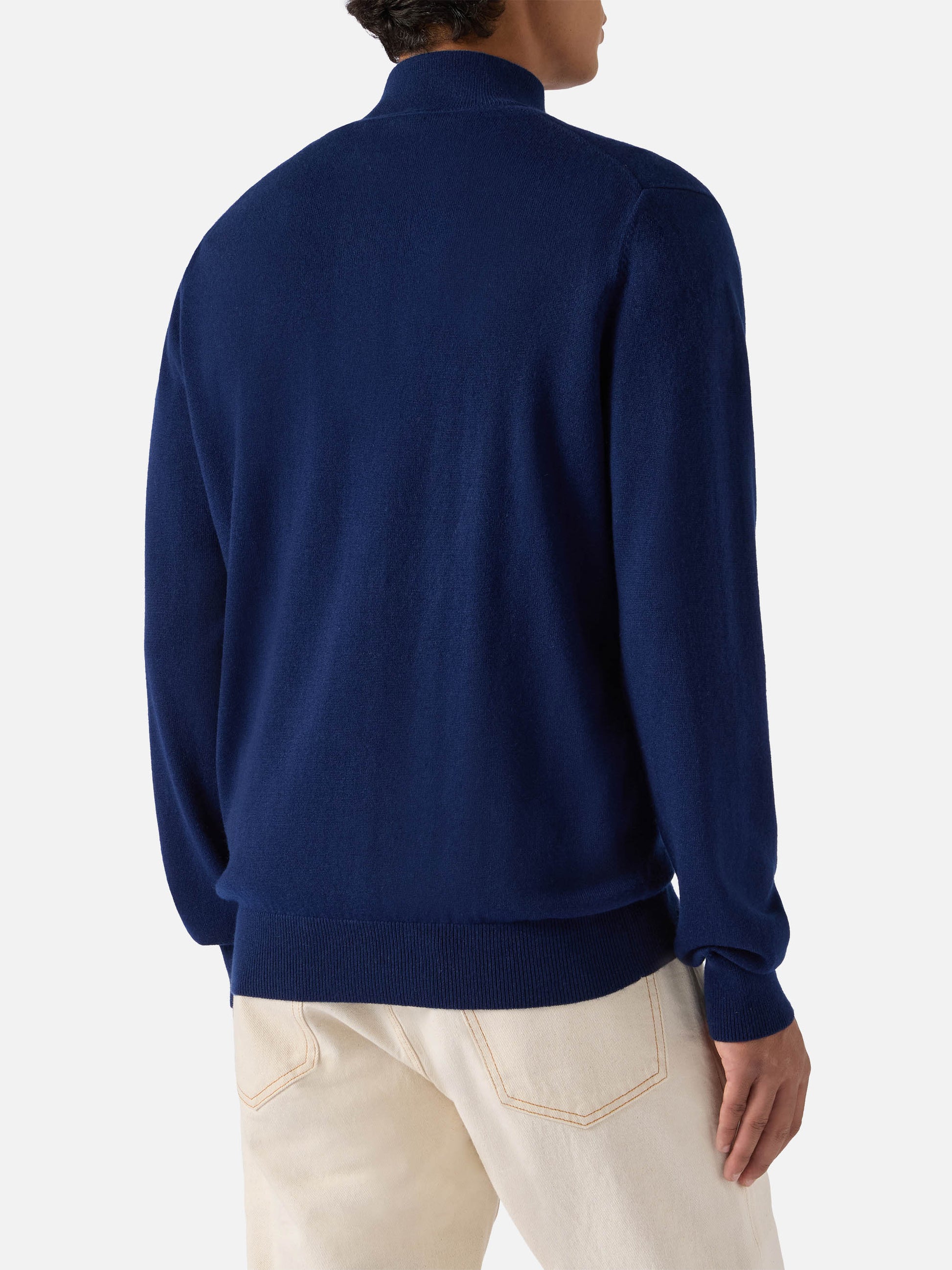 Maglione mezzocollo con zip in lana merino e cashmere blu navy