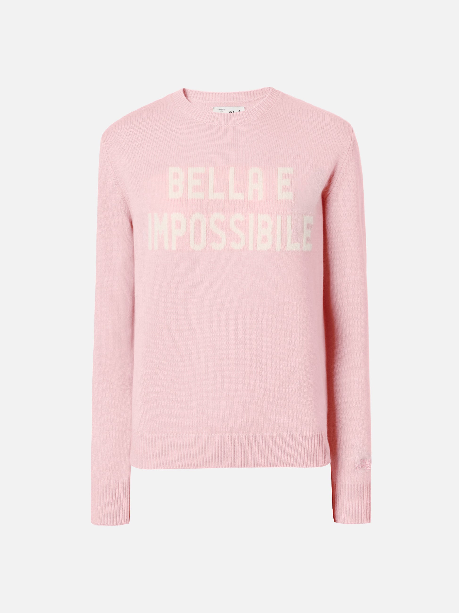 Maglione New Queen in misto cashmere rosa con jacquard Bella e Impossibile