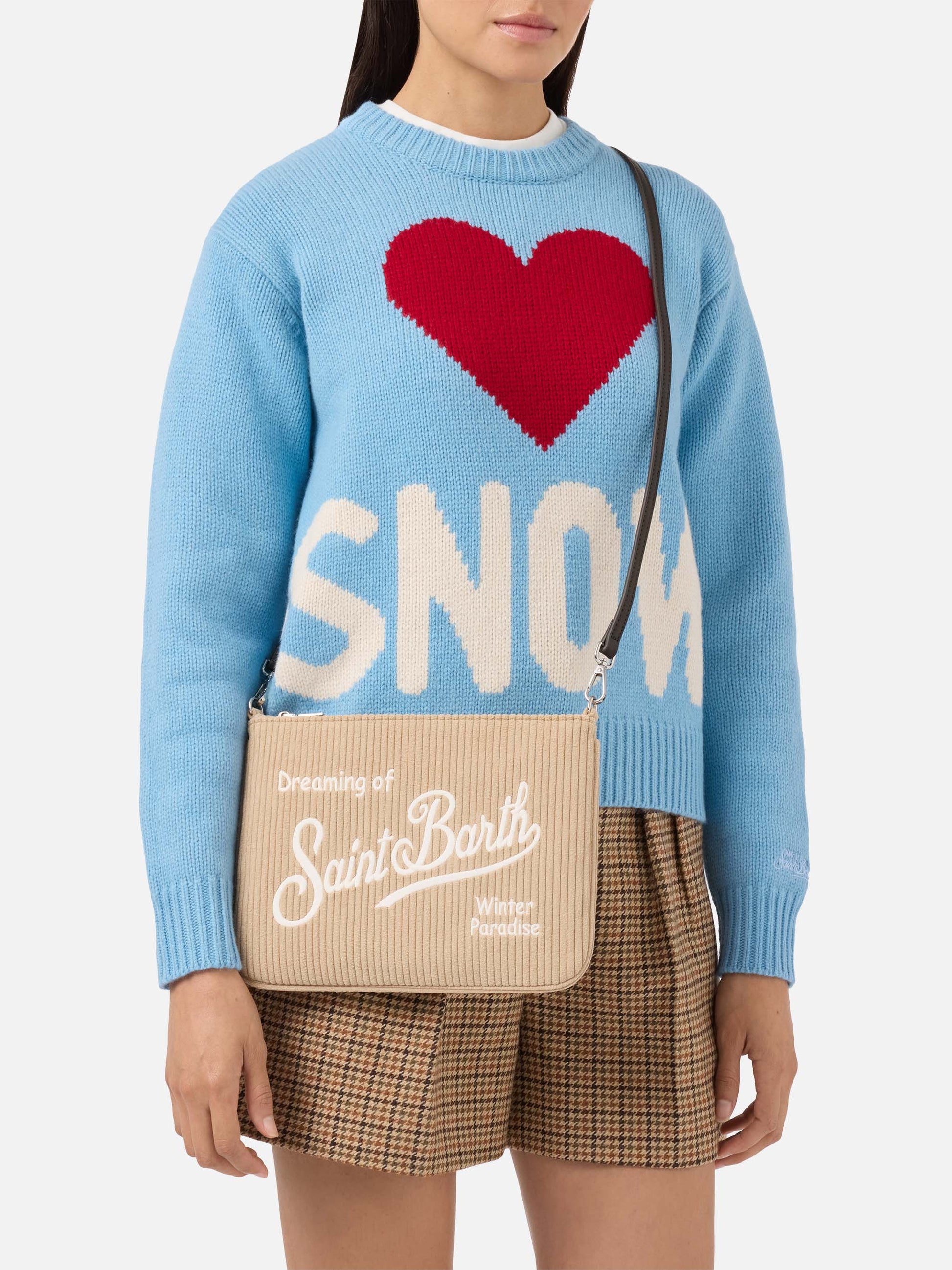 Borsa crossbody Parisienne Corduroy in velluto a coste beige