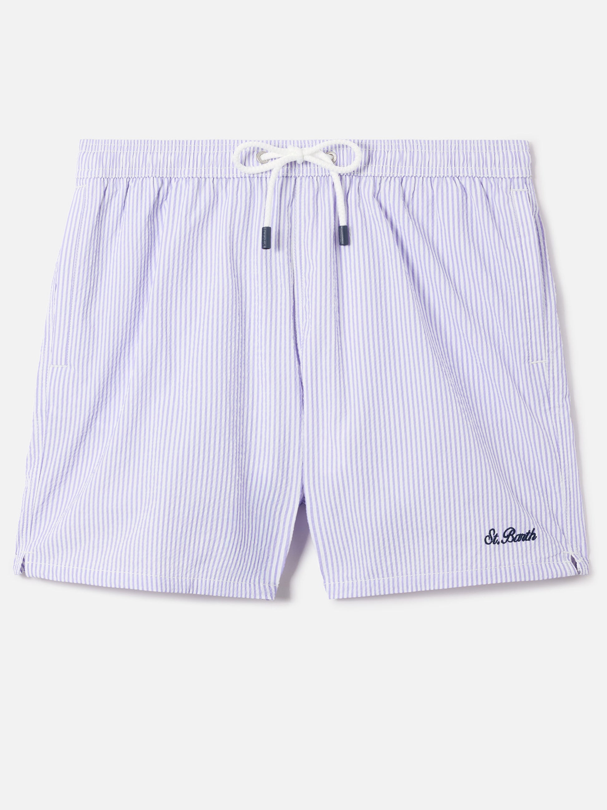Costume mare Patmos in seersucker rigato lilla e bianco