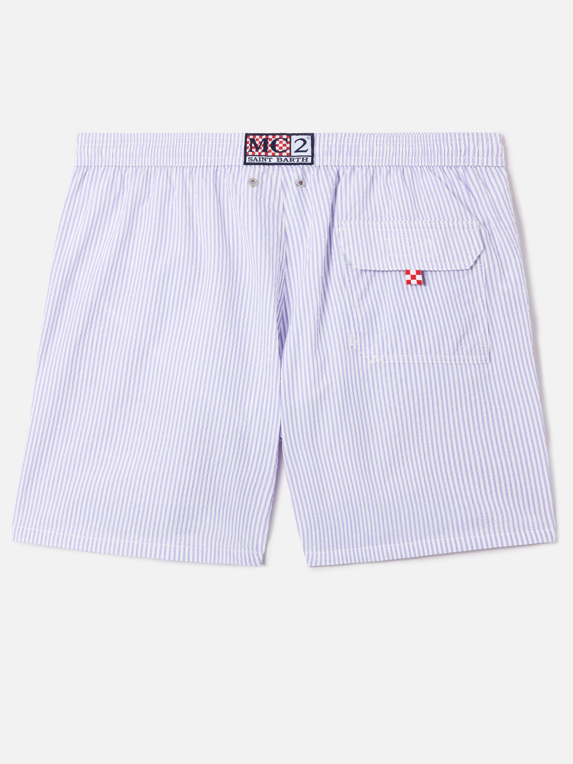 https://it.mc2saintbarth.com/products/patmos-seersucker-striped-swim-shorts-in-lilac-and-white10775377936730Costume mare Patmos in seersucker rigato lilla e bianco119,00https:files/UID_PATM00107934L-MAN-SWIMSHORT-SKY-MC2-MC2-20260410165328_1.jpghttps:files/UID_PATM00107934L-MAN-SWIMSHORT-SKY-MC2-MC2-20260410165328_1.jpgEURInStockSWIMSHORT650948215130All Products - Only Man649134276954AVADA - Best Sellers674079899994Costumi con Stampe Micro673887977818Dots, Stripes & Checks Swim Shorts674126365018Man striped patterns673877852506Men Print & Graphic Swim Shorts673877819738Men Quick Dry Swim Shorts673877524826Men Seersucker Swim Shorts673877360986Men Swim Shorts603371077978Tutti i costumi da bagno288251543736Uomo - Tutti i Costumi da Bagno654689960282UpSelling_Man_SwimshortsIl costume mare Patmos è realizzato in tessuto seersucker leggero e traspirante, pensato per offrire comfort e libertà di movimento durante l’utilizzo. La fantasia a righe definisce il design con un’estetica fresca e distintiva, arricchita dal ricamo logo sulla gamba. La lunghezza media e la vita elasticizzata con coulisse regolabile assicurano una vestibilità regular e confortevole. Il modello presenta tasche laterali a filetto, tasca laterale interna con zip e tasca posteriore con patella e chiusura velcro con passaggio per drenaggio dell’acqua. La retina interna elasticizzata antibatterica completa il design garantendo comfort e traspirabilità.