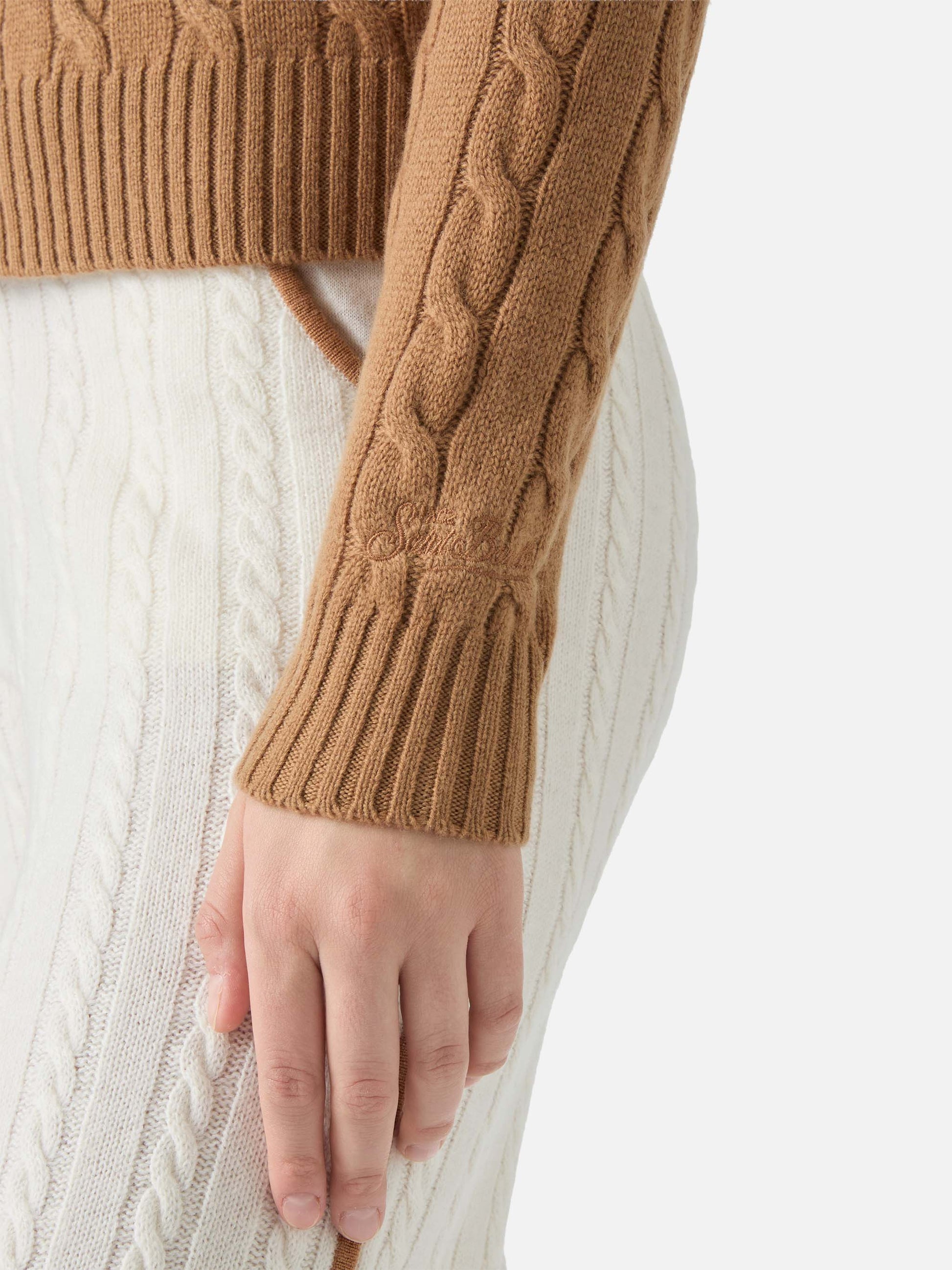 Maglione polo a trecce soft touch Savoy in lana merino cammello