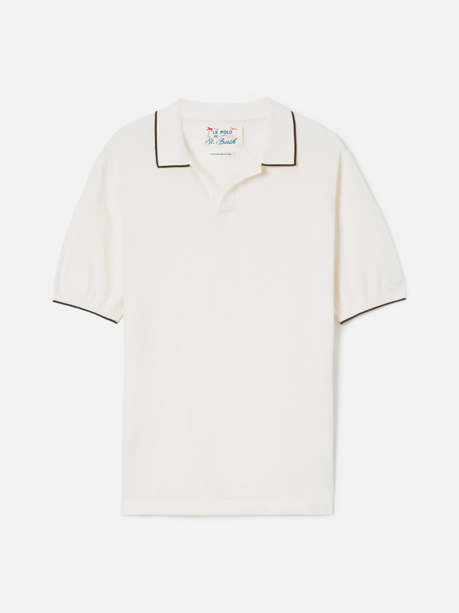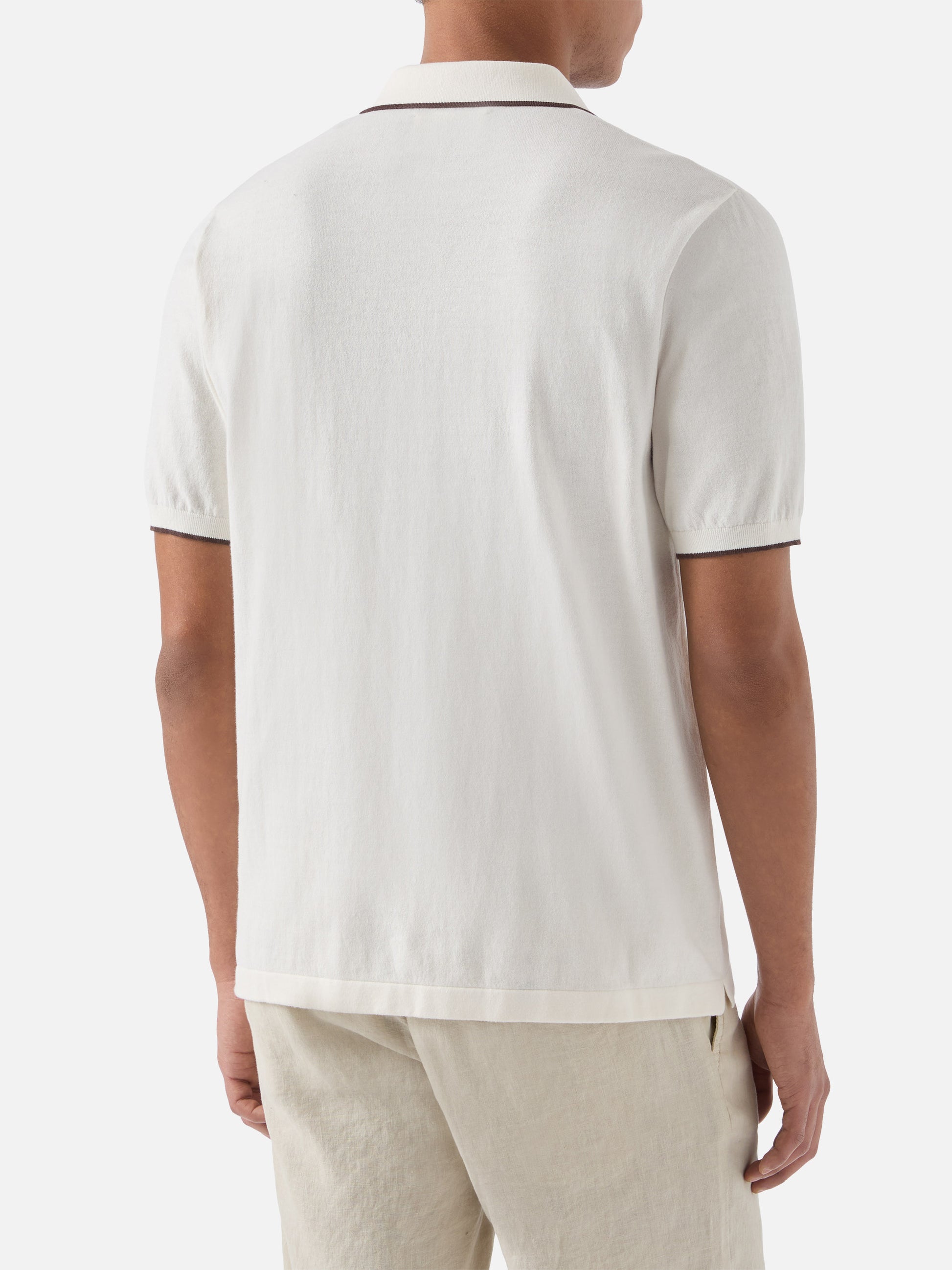 Polo Sloan in cotone pregiato high twist beige con profili a contrasto
