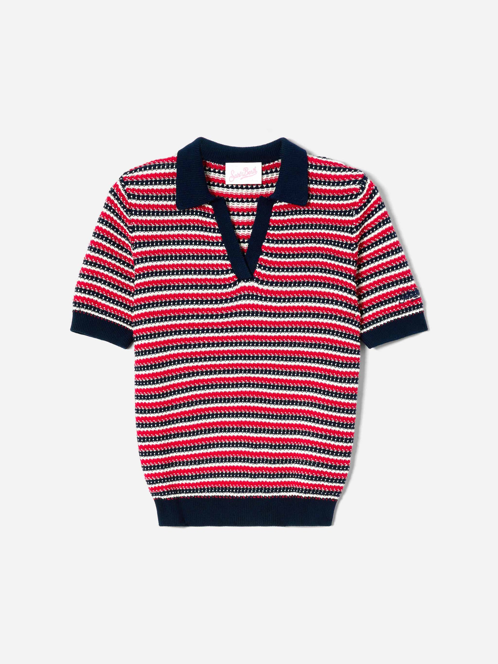 Borsa Tote Crochet a righe blu e rosse con logo ricamato