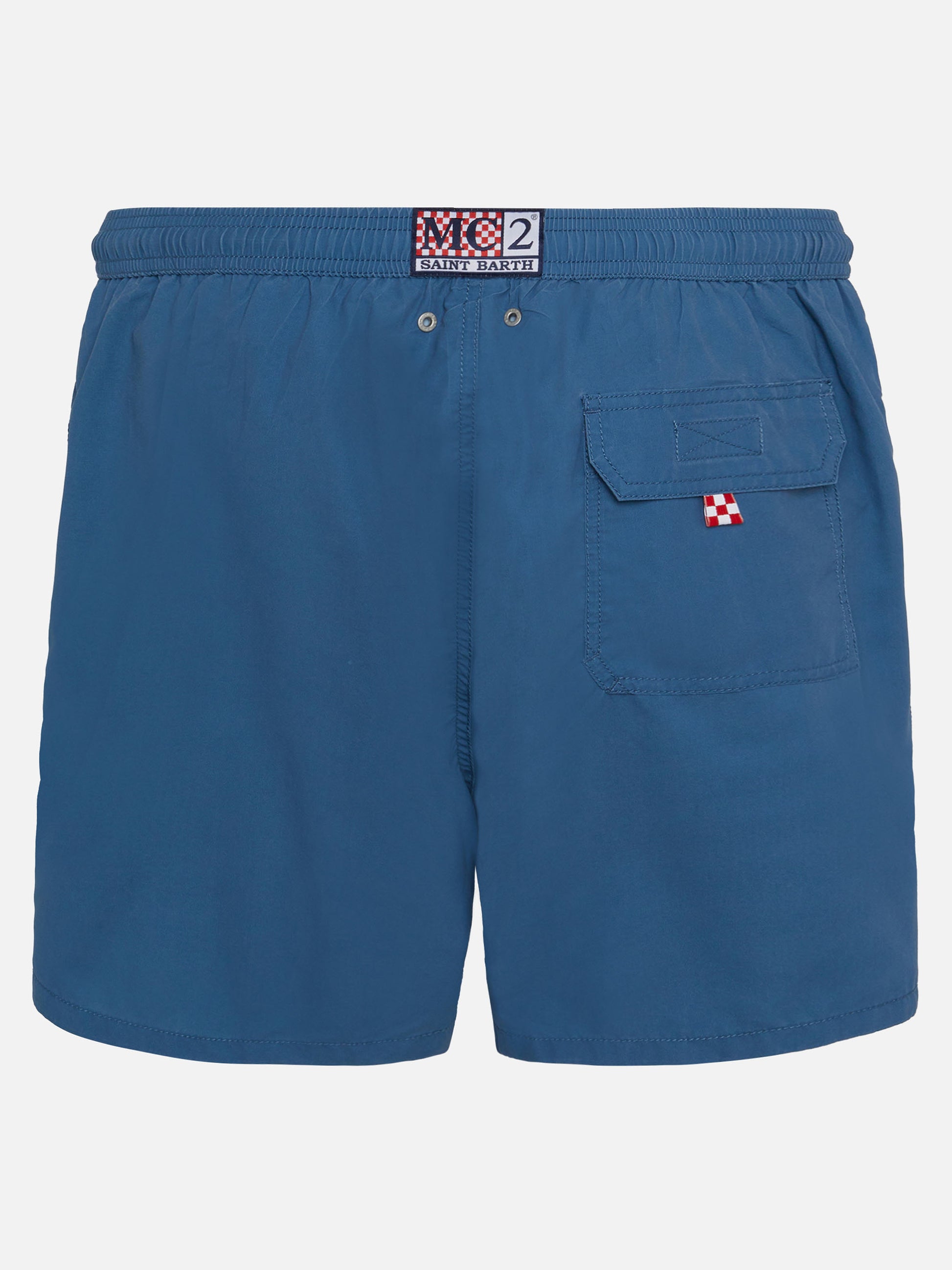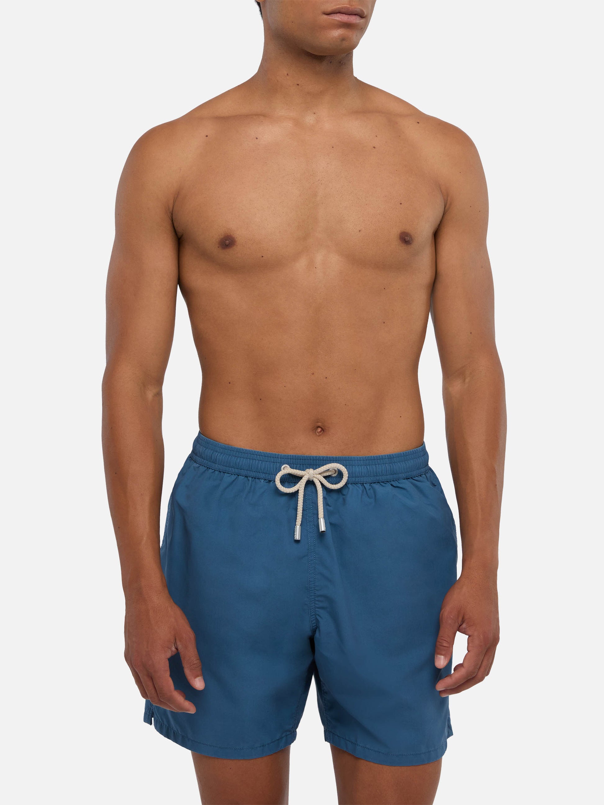 Colore blu polvere vintage Tocco testurizzato simile al cotone Dettaglio logo Saint Barth esclusivo sul fondo della gamba Vita elasticizzata comoda Cordino regolabile con terminali brandizzati Fodera interna antibatterica in rete Tasche laterali con cuciture francesi Tasca posteriore con chiusura in velcro Occhielli brandizzati progettati per drenare l'acqua e prevenire l'effetto pallone Etichetta esclusiva MC2 Saint Barth sul retro Vestibilità classica Composizione: 100% poliestere La taglia L ha una larghezza metà vita di 52,5 cm (stirata) e varia di 2 cm per ogni taglia