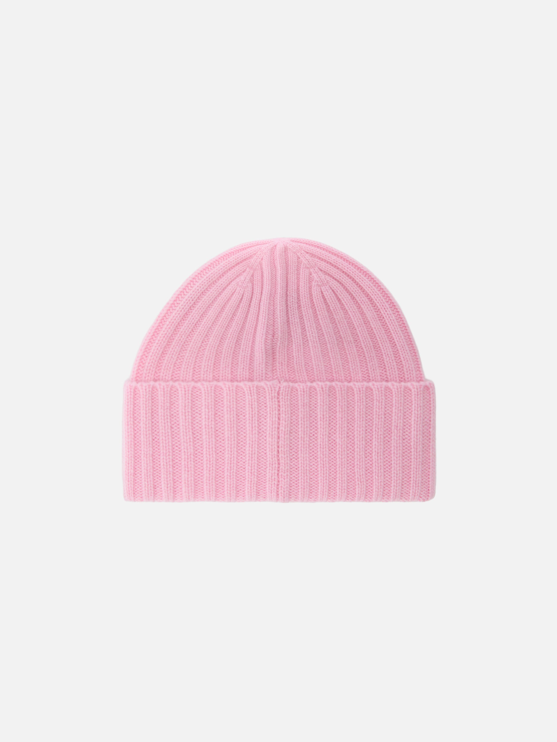 Berretto Wengen in cashmere rosa con ricamo St. Barth sul risvolto