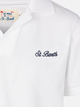 Polo Charles Jr in piqué di cotone bianco senza bottoni