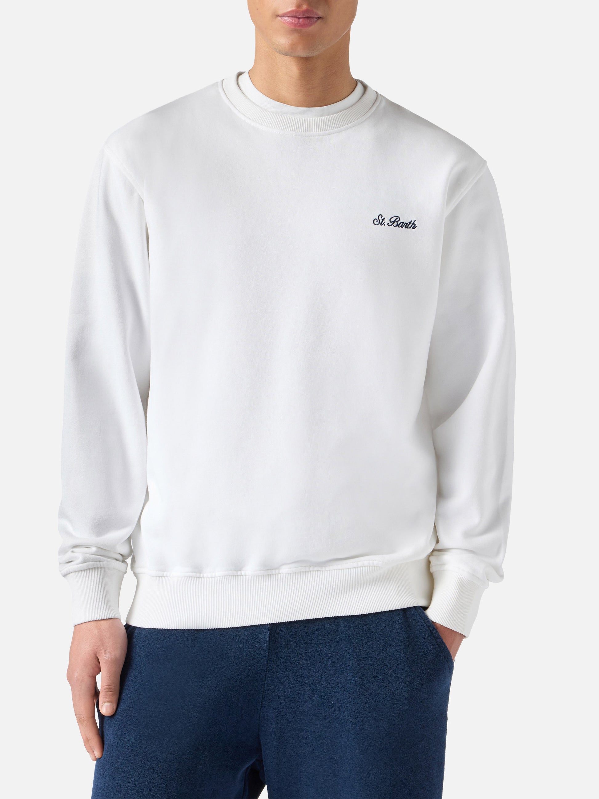Felpa Ponza bianca con ricamo St. Barth a contrasto