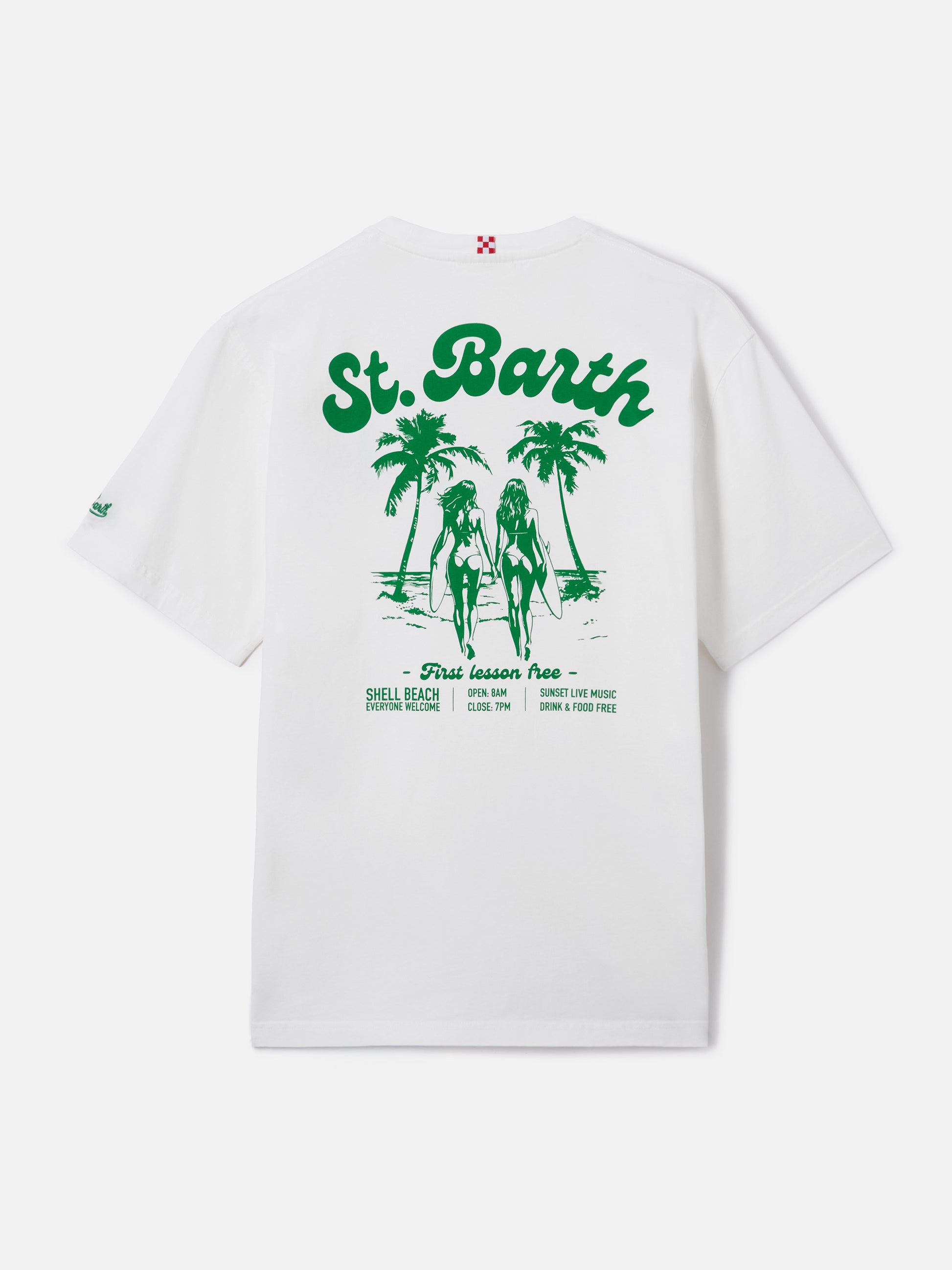 T-shirt Portland bianca con stampa Surf Lessons Free
