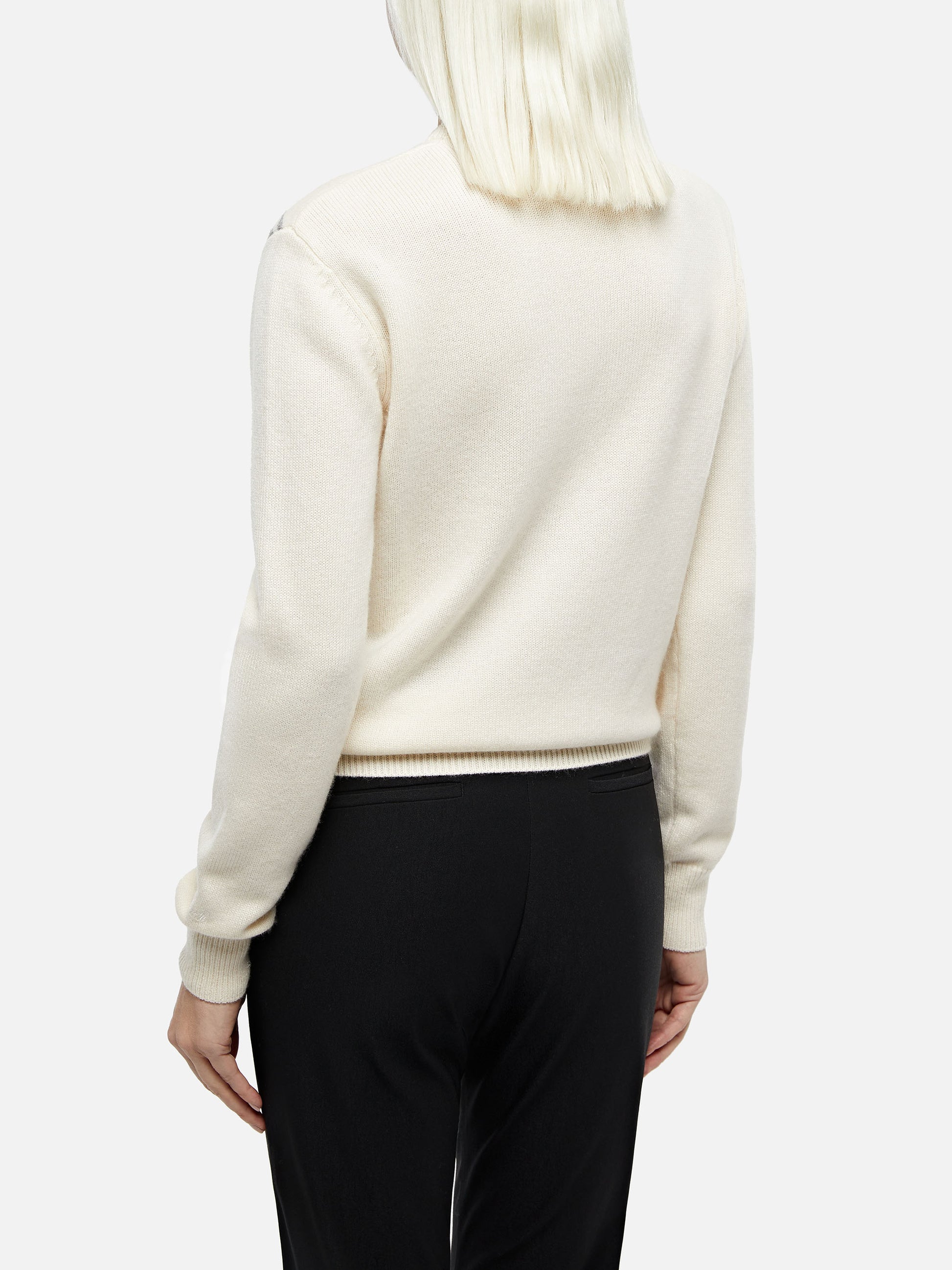 Maglione bianco da donna New Queen con stampa e ricamo cartolina Lovovia